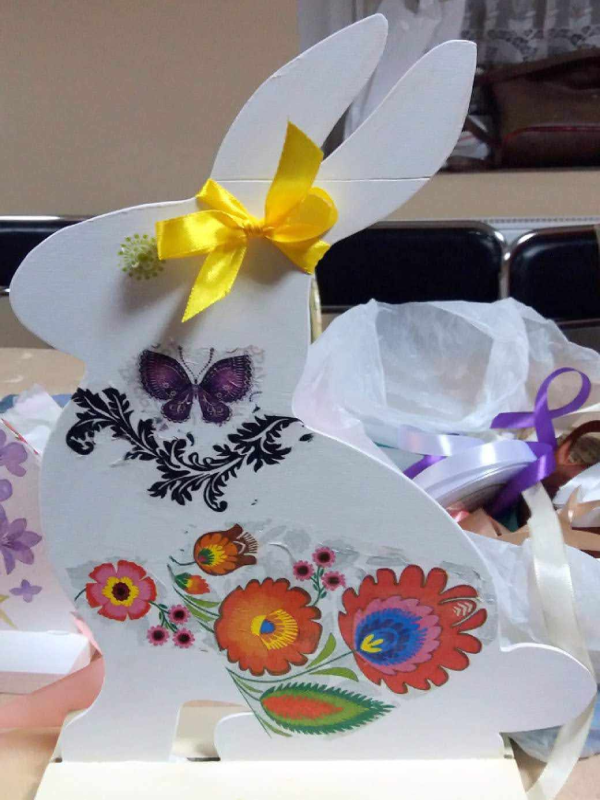 W zalezności od tego, które ozdoby będziecie chceli robić, wykonacie np. prześlicznego stojącego zająca, drewniane jajo z zającem lub pisanki.